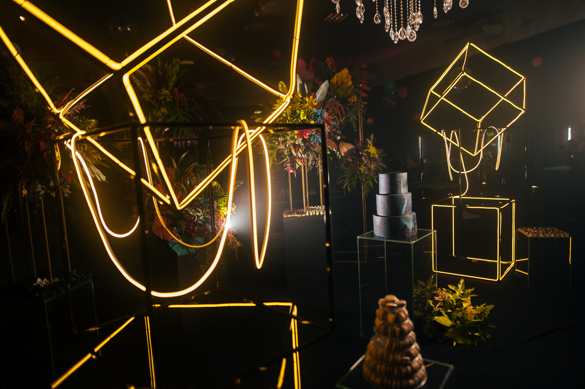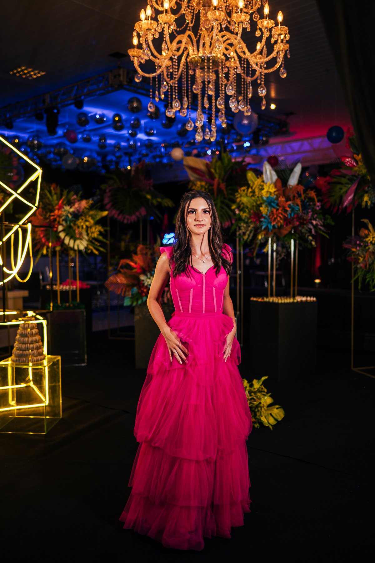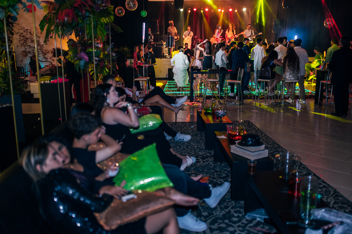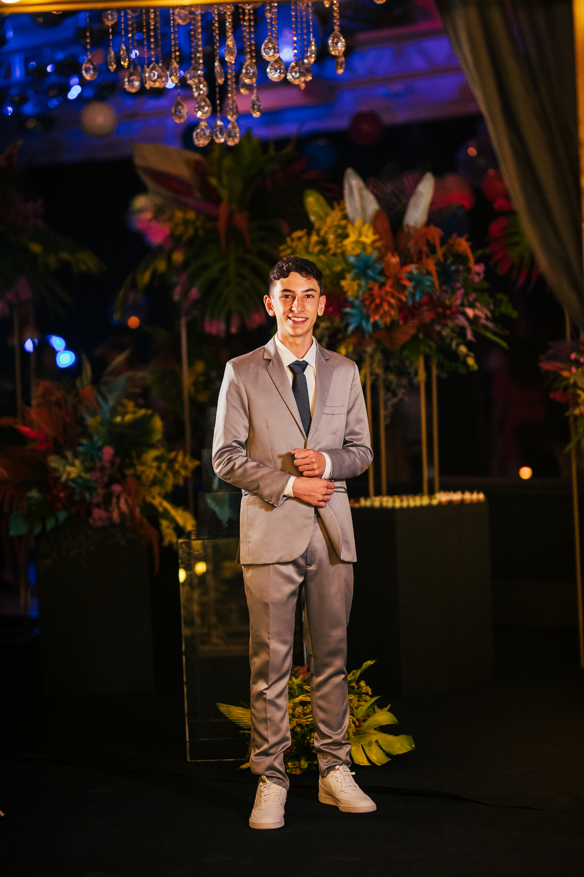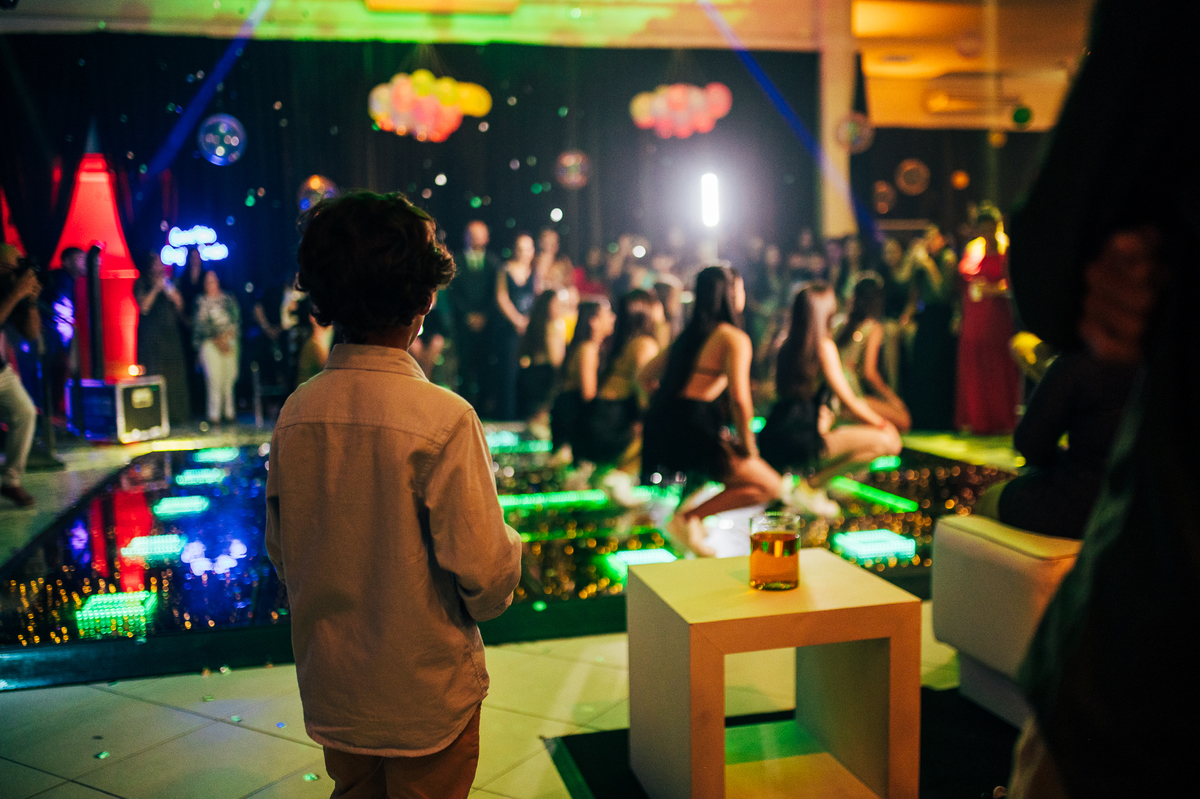 Essa história começa bem antes, a Elaine mãe dos gêmeos correndo contra o tempo pra fazer uma festa para as crianças, a preocupação dela era criar algo que fosse importante para os dois, pensamos no ensaio, na decoração, tudo para mostrar essa dualidade, a única coisa que o Vinícius não quis participar foi da dança com a as meninas, mas Laura fez isso com excelência.