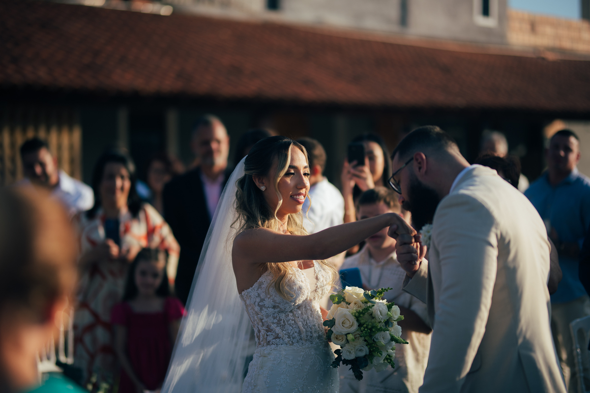 Sarah é intensidade pura, cheia de ideias, de brilho no olhar e com um coração enorme. Estava tão entregue ao seu grande dia que mal conseguia conter a energia! Alinhamos a ansiedade logo no making of para que ela pudesse viver cada momento com calma e presença… E quase transformamos tudo num editorial, de tantas fotos incríveis que surgiram.